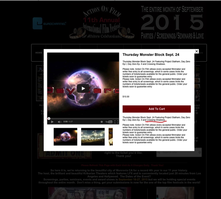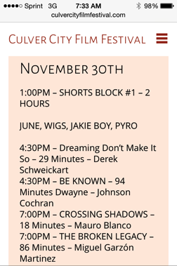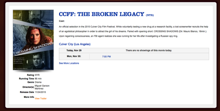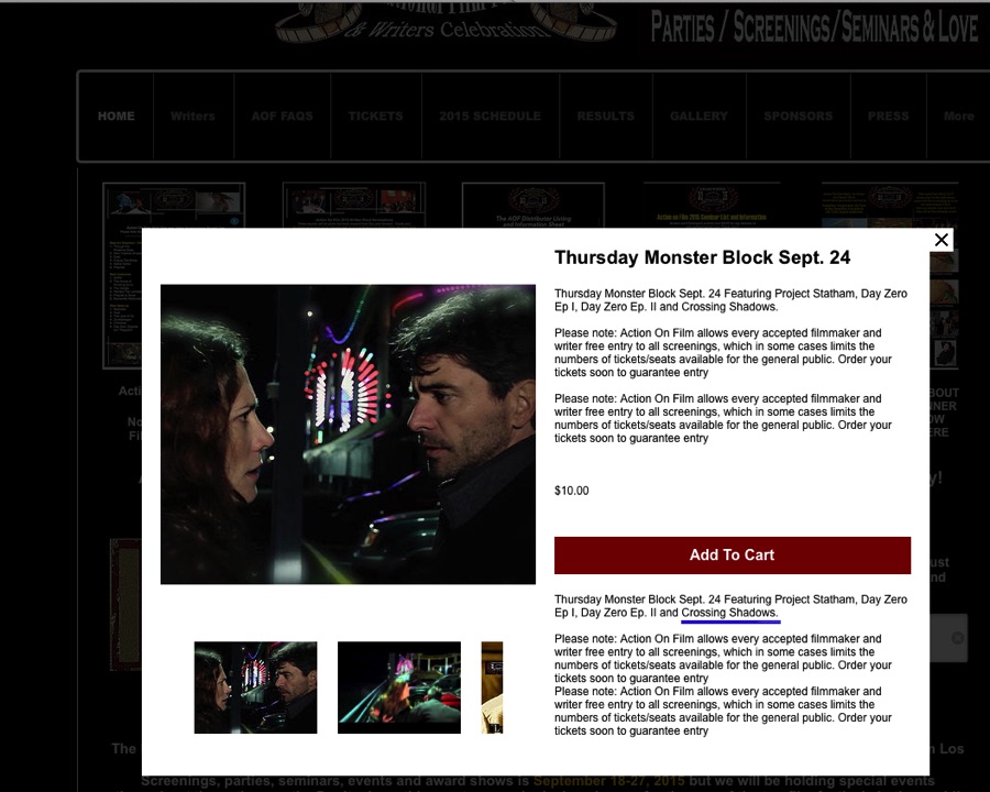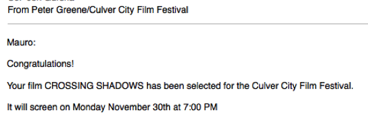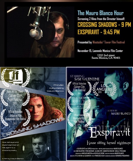 CROSSING SHADOWS wins Best Short Ensemble with EXSPIRAVIT, another film written and directed by Mauro Blanco, at the Tower Film Festival, Laemmle Theater, in Santa Monica, California.